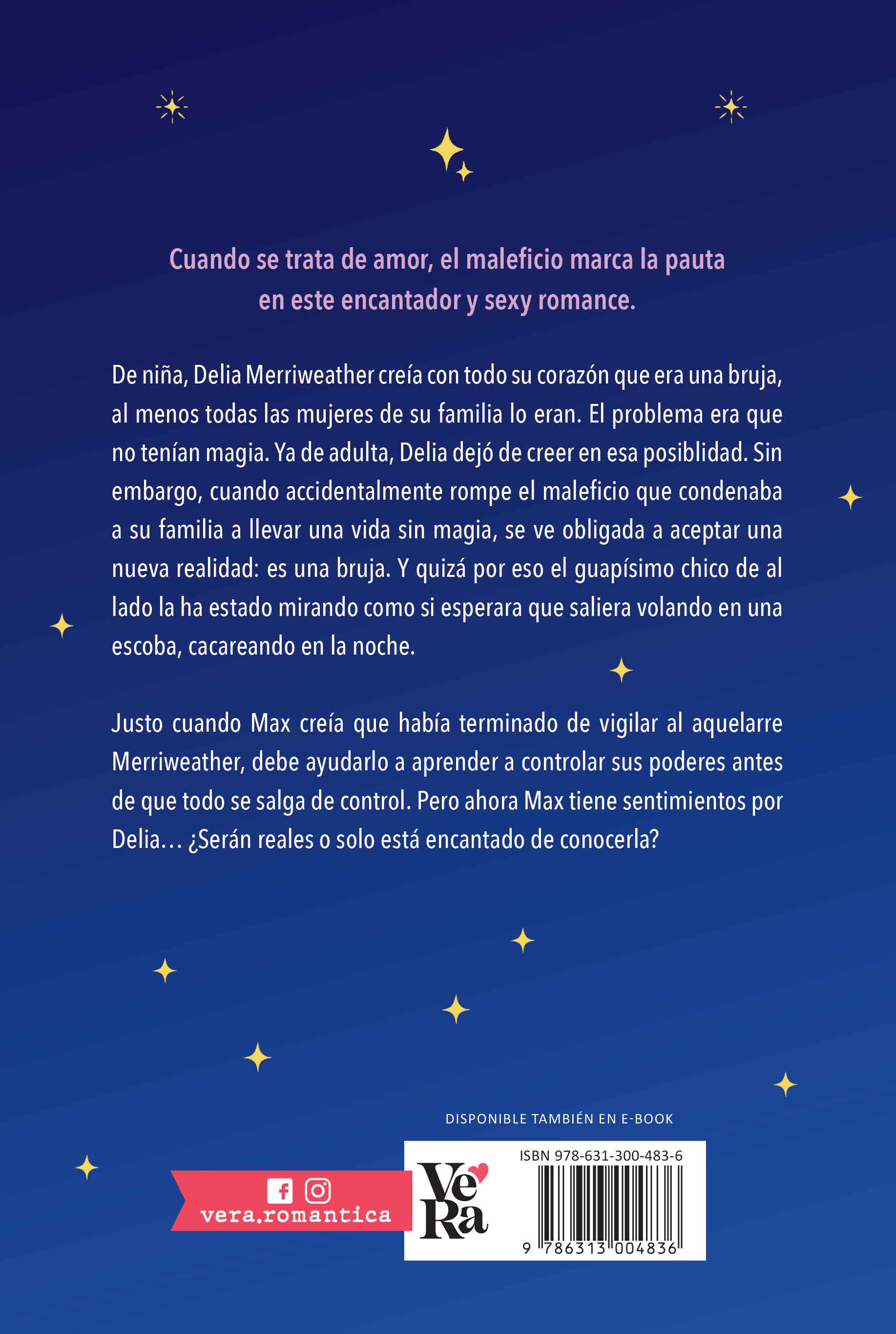 Cuando se trata de amor, el maleficio marca la pauta en este encantador y sexy romance. De niña, Delia Merriweather creía con todo su corazón que era una bruja, al menos todas las mujeres de su familia lo eran. El problema era que no tenían magia. Ya de adulta, Delia dejó de creer en esa posibilidad. Sin embargo, cuando accidentalmente rompe el maleficio que condenaba a su familia a llevar una vida sin magia, se ve obligada a aceptar una nueva realidad: es una bruja. Y quizá por eso el guapísimo chico de al lado la ha estado mirando como si esperara que saliera volando en una escoba, cacareando en la noche. Justo cuando Max creía que había terminado de vigilar al aquelarre Merriweather, debe ayudarlo a aprender a controlar sus poderes antes de que todo se salga de control. Pero ahora Max tiene sentimientos por Delia... ¿Serán reales o solo está encantado de conocerla?