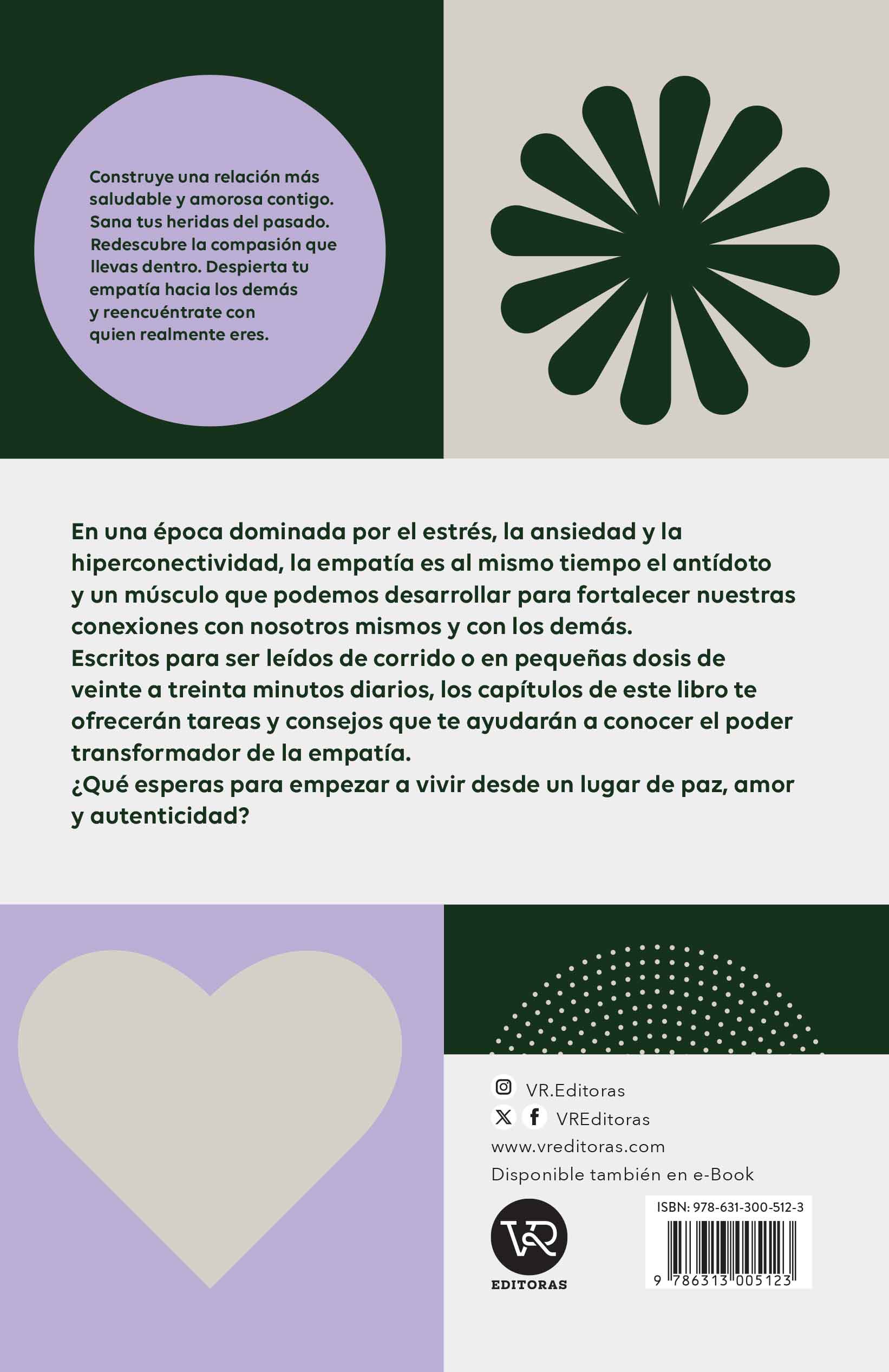 En una época dominada por el estrés, la ansiedad y la hiperconectividad, la empatía es al mismo tiempo el antídoto y un músculo que podemos desarrollar para fortalecer nuestras conexiones con nosotros mismos y con los demás. Escritos para ser leídos de corrido o en pequeñas dosis de veinte a treinta minutos diarios, los capítulos de este libro te ofrecerán tareas y consejos que te ayudarán a conocer el poder transformador de la empatía. ¿Qué esperas para empezar a vivir desde un lugar de paz, amor y autenticidad?