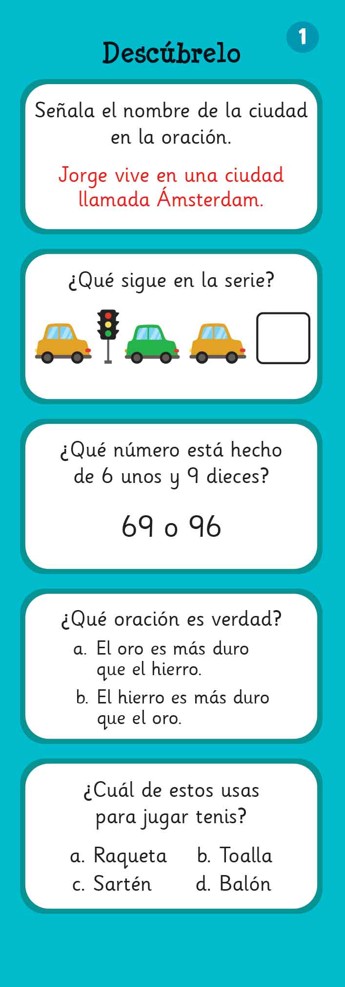 Actividades para entrenar al cerebro. Las niñas y los niños despertarán su curiosidad y la chispa del conocimiento a través de ejercicios didácticos adaptados a su edad. Cada tarjeta tiene lindas ilustraciones y las soluciones al reverso. Y lo mejor de todo: ¡ juegos y actividades para divertirse!